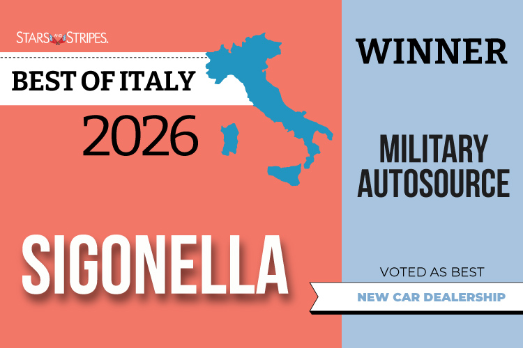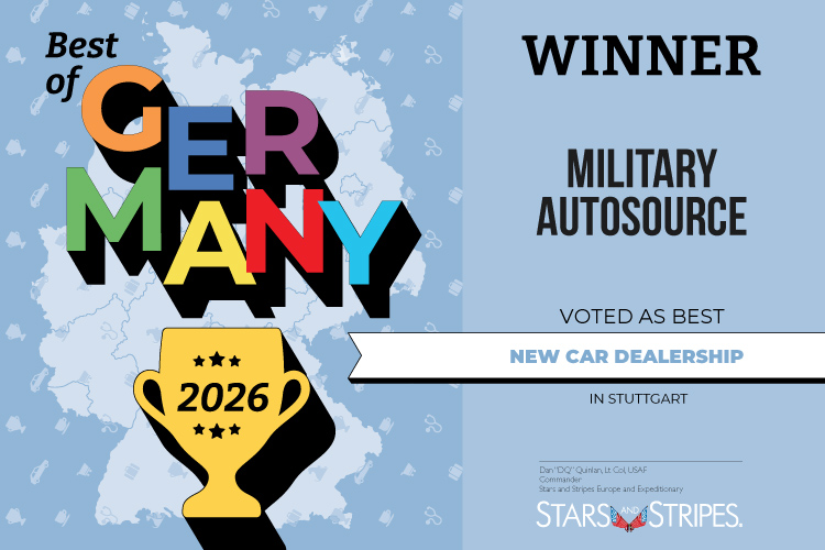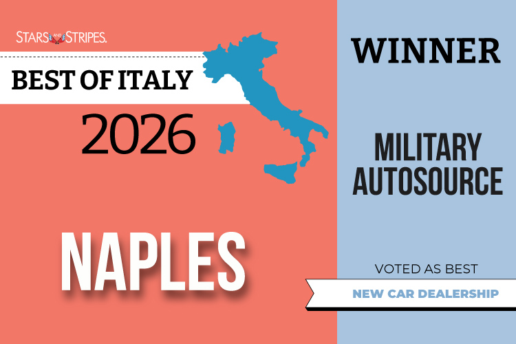 Military AutoSource (MAS) is proud to be recognized again as the top new car-buying program by Stars and Stripes. MAS took home multiple Best of Germany awards for Kaiserslautern, Wiesbaden, and Stuttgart. MAS was also named a winner in the Best of Italy awards for Sigonella and Naples.